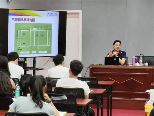 培訓班邀請到了國家級裁判安琪、陳永發、楊榮欣、陸科主講授課。講師們根據多年的執裁、執教經歷,結合實例進行分析講解,使學員們在緊湊的培訓期時間里,充分學習氣排球競賽規則、賽程編排、裁判職責、記錄方法與手勢、教練員訓練及技戰術等課程,并進行了理論筆試考核。實踐授課及考核環節,學員們通過模擬比賽的方式,分組輪流執裁。通過講師的現場指導與糾正,使得學員們在裁決判罰和臨場指揮方面,得到了有效提升。