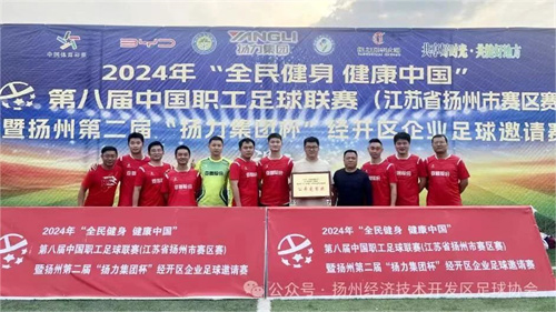 6月16日,2024年“全民健身 健康中國”第八屆中國職工足球聯賽江蘇省揚州市基層賽暨2024揚州經開區“揚力集團杯”企業足球邀請賽,在揚州藍運河SPORT體育公園落下帷幕。