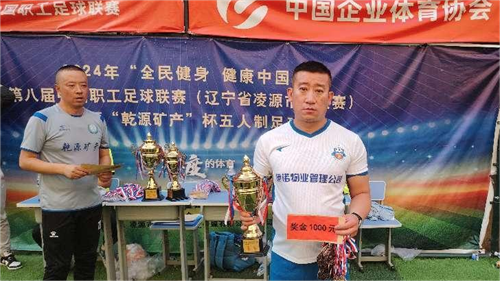 6月16日,2024年“全民健身 健康中國”第八屆中國職工足球聯賽遼寧凌源市基層賽暨“乾源礦產杯”凌源第五屆足球賽(五人制)圓滿落幕。本屆賽事經過一個多月33場比賽的激烈角逐,團體獎項和個人榮譽獎項全部出爐,閉幕式上,賽事組委會為獲獎個人和隊伍頒發了獎杯、獎牌和獎金。