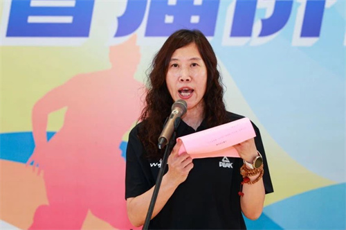 山東省省直機關老年提攜副秘書長、籃球專委會主任任明霞致辭。