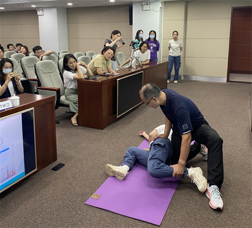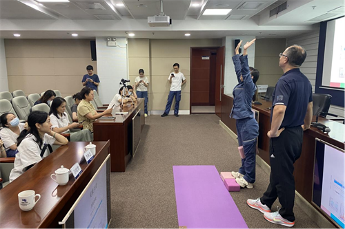 在培訓過程中,專家老師帶領職工實操互動-共振呼吸
