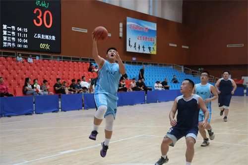 甲級組迎來唐首馬鐵礦和協力公司的較量。隨著一聲哨響,雙方隊員迅速進入狀態,互不相讓展開激烈的角逐,協力公司嚴防內線,唐首馬鐵礦則盡全力封堵外線。比賽過程中,雙方隊員嚴密防守,勇于爭先,默契傳球、完美配合;場下教練運籌帷幄,場邊親友團熱情洋溢,每一次精彩的進球都伴隨著陣陣掌聲和歡呼聲。最終唐首馬鐵礦76:65獲勝。
