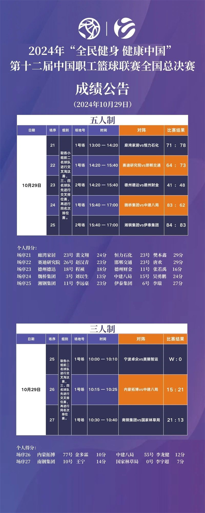 2024年第十二屆中國職工籃球聯賽全國總決賽第四日賽果及決賽圈預告