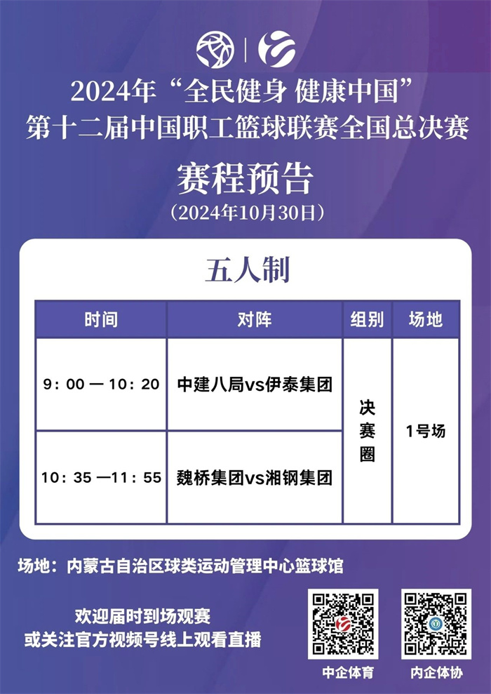 歡迎屆時到場現場觀賽,或掃碼關注“中企體育”、“內蒙古企業體育協會”視頻號,線上觀看比賽直播。