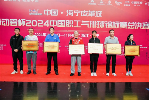 11月3日,為期3天的“中國·海寧皮革城 – 勞動者杯“2024中國職工氣排球錦標賽總決賽在海寧市體育中心體育館落下帷幕,男女青年、男女中年、混合青年五個組別的桂冠塵埃落定。中國企業體育協會、浙江省氣排球協會、海寧市文化和廣電旅游體育局、市工人文化宮有關領導和贊助商代表為獲獎隊伍頒獎。