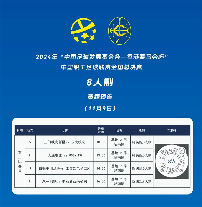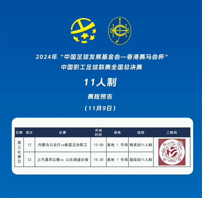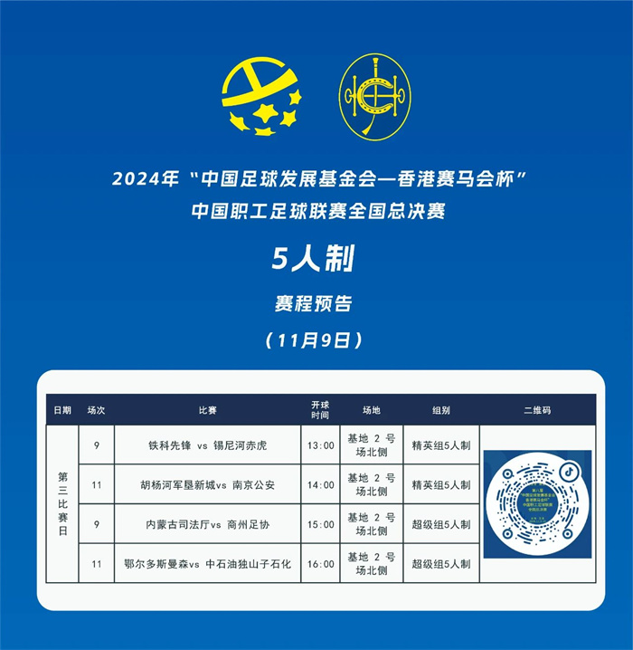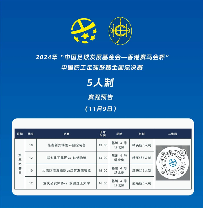 2024年第八屆“中國足球發展基金會-香港賽馬會杯”中國職工足球聯賽全國總決賽第三輪比賽直播
