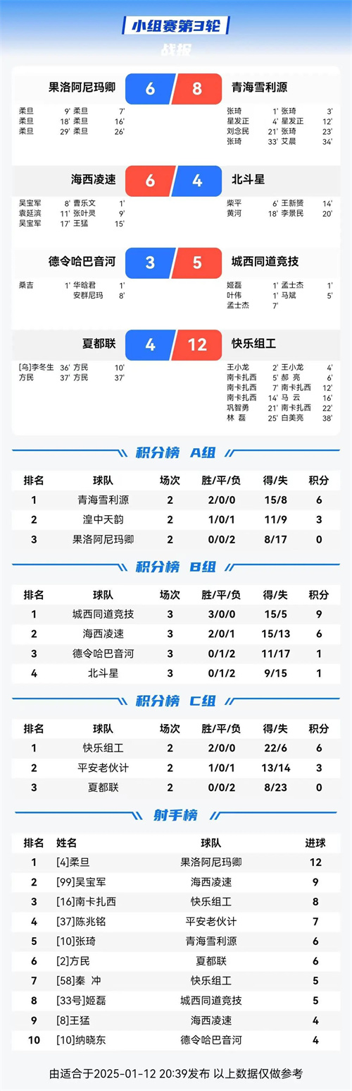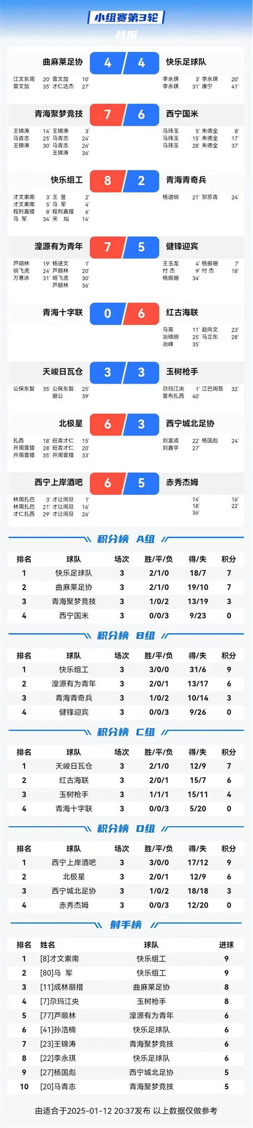 截至發稿,2025年“全民健身 健康中國”第九屆中國職工足球聯賽(青海省西寧市基層賽)暨 2025“八坊酒薈 . 小李子西寧”第五屆五人制足球城市冠軍杯賽,已經戰罷三輪,戰報如下: