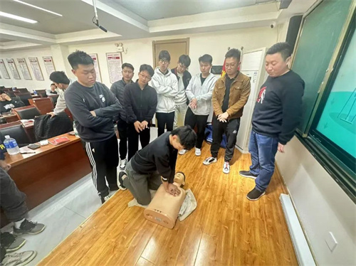 值得一提的是,本期培訓班在籃球裁判技能授課的基礎上,還特別增加了心肺復蘇及AED應急救護方面培訓,邀請濟南御山首府醫院張文博老師給大家進行講解。在當下業余比賽,甚至公共場合下,身體突發不適情況隨時可能發生,掌握此類應急救護常識,不僅可以在“黃金4分鐘”內對傷者實施緊急救助,為專業醫療爭取寶貴時間,也可以提升個人綜合能力價值,體現社會責任感,讓每一位學員都能成為生命的守護者。培訓過程中,講師首先講解了有關理論知識,然后通過模擬進行現場實操,每一位學員都認真按照講師指導完成演練。