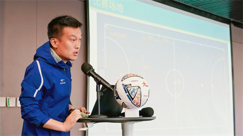 圖注:裁判監(jiān)督、中企體協(xié)足球專業(yè)委員會楊濤對規(guī)程與規(guī)則、