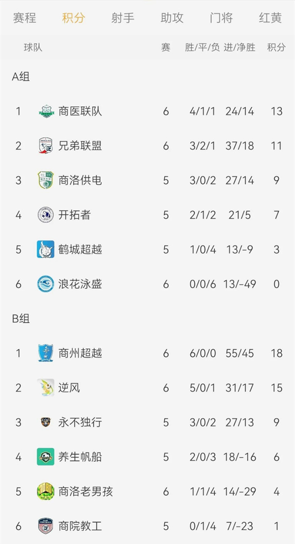 2025年“全民健身 健康中國”第九屆中國職工足球聯賽陜西省商洛市五人制基層賽,暨商州區第六屆五人制足球聯賽小組賽中,經過5輪共30場的激烈角逐,12支職工足球隊的A組和B組小組賽排名已經揭曉。