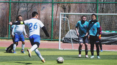 圖注:赤雪杰姆17號文鴻俊(藍(lán)色上衣)主罰任意球。