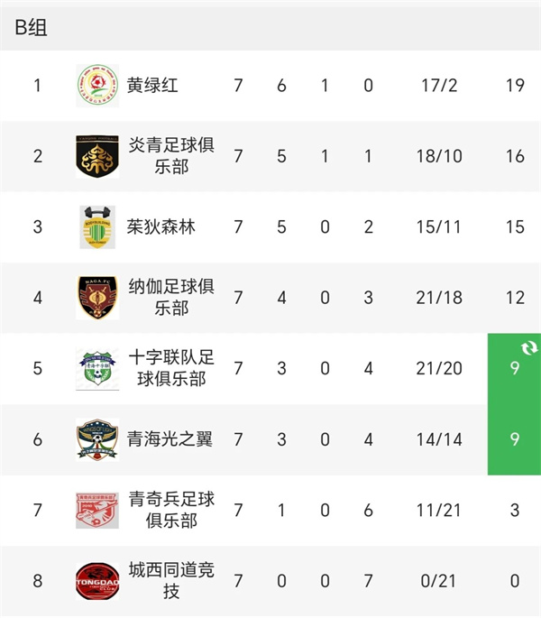 B 組中,黃綠紅足球俱樂部憑借 6 勝 1 平 0 負(fù)的佳績穩(wěn)居榜首,小組賽僅失 2 球,防守端堪稱 “銅墻鐵壁”;炎青足球俱樂部以 5 勝 1 平 1 負(fù)的成績位列小組第二。