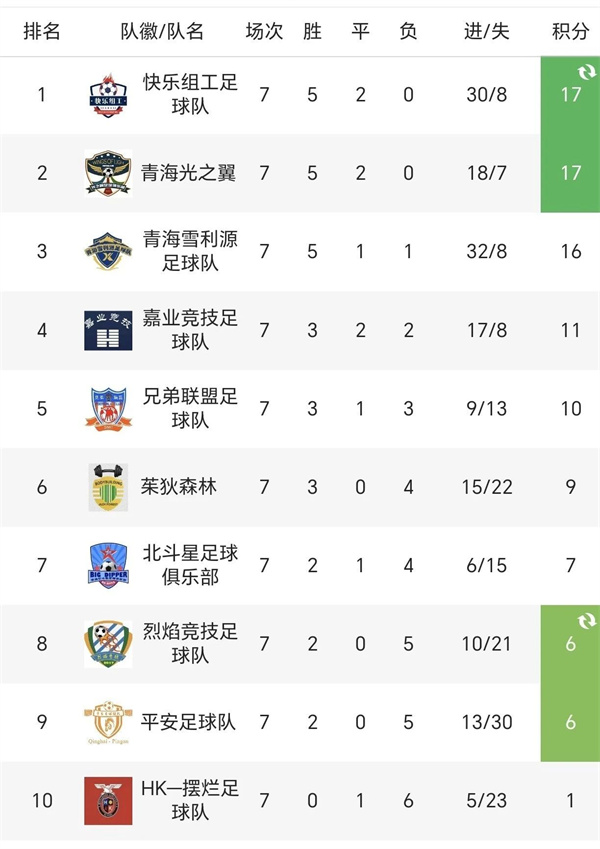 A、B 兩組共 16 支球隊(duì)展開激烈角逐。其中,A組北極星足球俱樂部表現(xiàn)尤為亮眼,以 7 勝 0 平 0 負(fù)的傲人戰(zhàn)績領(lǐng)跑 A 組,凈勝球高達(dá) + 27;青海睿駿俱樂部則以 5 勝 1 平 1 負(fù)的成績緊隨其后。