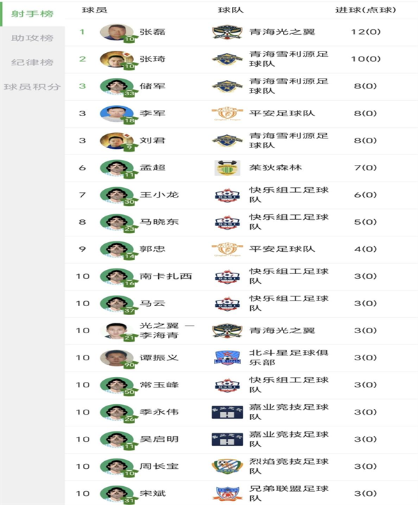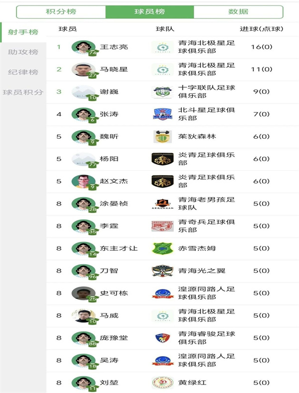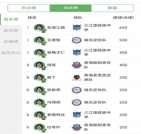 炎青足球俱樂部的77號楊陽、趙文杰并列第 5 名,體現(xiàn)出團(tuán)隊(duì)進(jìn)攻的均衡性;青海北極星與湟源同路人各有 3 名球員上榜,充分展現(xiàn)出兩支球隊(duì)?wèi)?zhàn)術(shù)體系靈活多變的特點(diǎn)。
