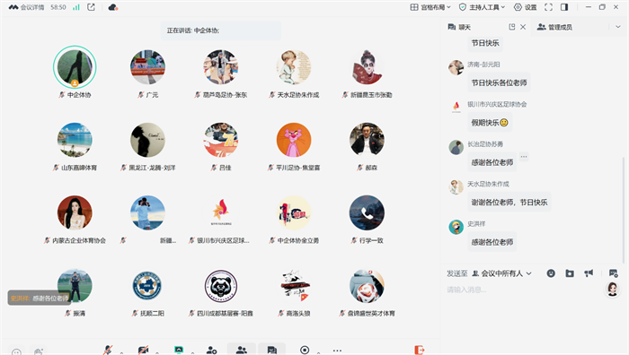 4 月 29 日晚 ,中國企業體育協會足球專業委員會通過網絡會議形式,召開了 2025 年第三次聯絡員會議。足球專業委員會趙巖、金立勇、楊濤、郭雨琛,全民AI賽事平臺劉佳玲、郭婷婷老師,以及各賽區負責人及承辦單位聯絡員等60人共同參會,會議由趙巖主持。