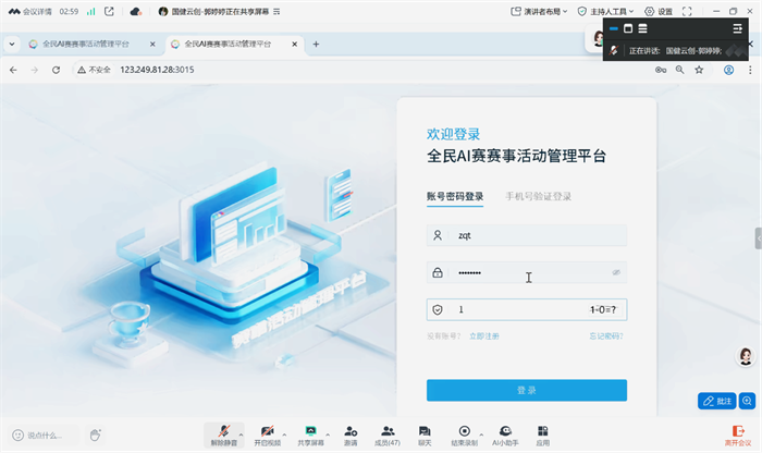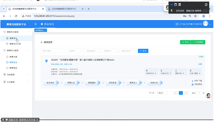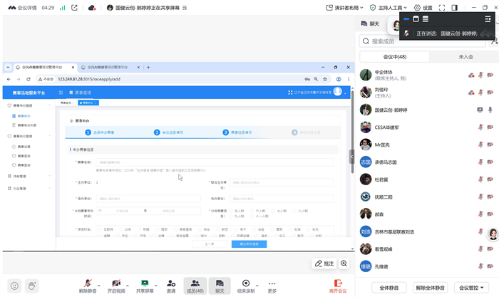 會議伊始,劉佳玲老師和郭婷婷老師分別就線上平臺錄入重點及承辦方系統操作流程進行了詳細講解與投屏演示,為承辦單位平臺錄入、提交賽事資料工作奠定基礎。