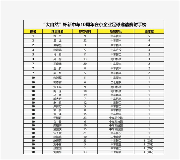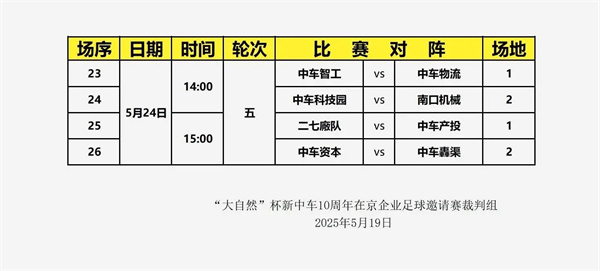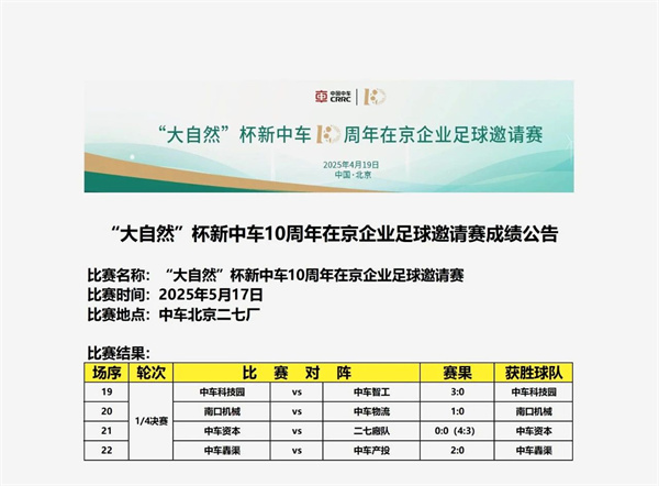 “大自然”杯新中車10周年在京企業足球邀請賽第四比賽日成績公告