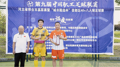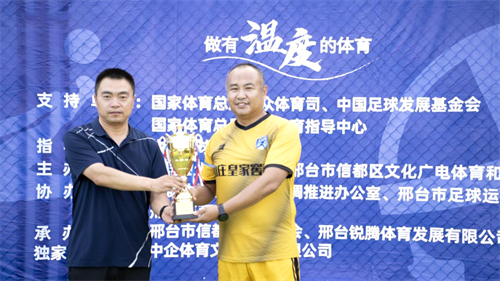 圖注:邢臺市足球運動協(xié)會主席雷停為星玫足球隊頒發(fā)亞軍獎杯。
