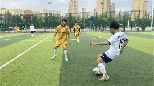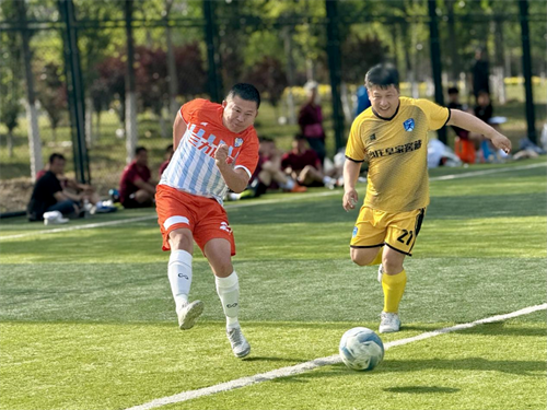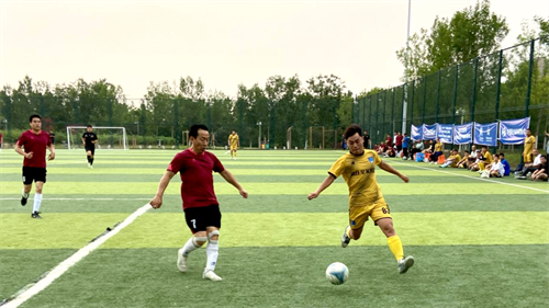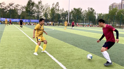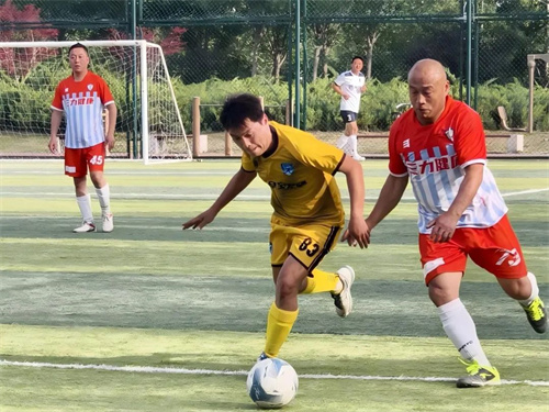 圖注:沙河逐夢燈光(黃色上衣)與星枚足球隊(紅色上衣)