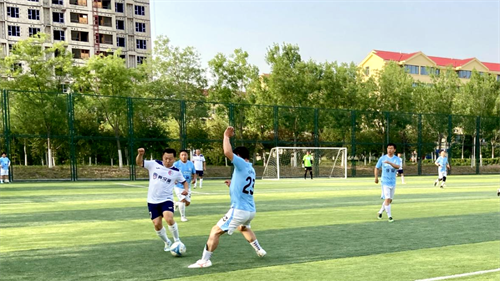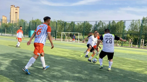 圖注:沨融環(huán)保老伙計(白色上衣)與星枚足球隊(紅色上衣)