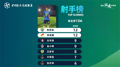 失誤送禮: 第29分鐘,昊毅后場回傳失誤,大悅城王龍與隊友二過一后推射扳平,1比1!間接任意球巧妙配合: 第31分鐘,昊毅門將手接回傳球被判禁區內間接任意球,大悅城李成耀接隊友球后,假射真扣后彈射反超,2比1!同時他也憑借這粒進球,共計攻入12球與健群捌零的95號張哲林并列射手榜第一。