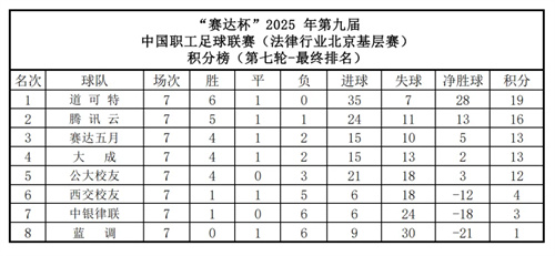 2025年“全民健身 健康中國”第九屆中國職工足球聯賽法律行業北京十一人制基層賽圓滿落幕。