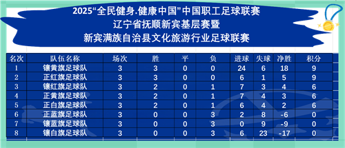 2025“全民健身 健康中國”第九屆中國職工足球聯賽遼寧省撫順新賓八人制基層賽暨新賓滿族自治縣文化旅游行業足球聯賽,第三輪戰報: