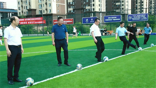圖注:領(lǐng)導嘉賓為比賽開球。
