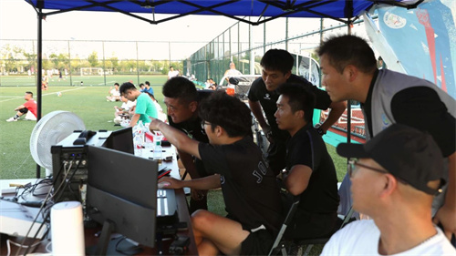圖注:本屆比賽首次采用VAR技術,現(xiàn)場工作人員給裁判員調(diào)試畫面回放。