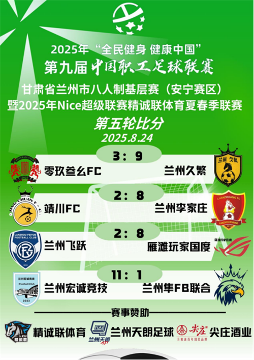 賽區傳真 | 甘肅省蘭州市八人制基層賽(安寧賽區)暨2025年Nice超級聯賽精誠聯體育夏季聯賽戰報