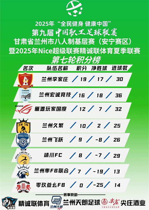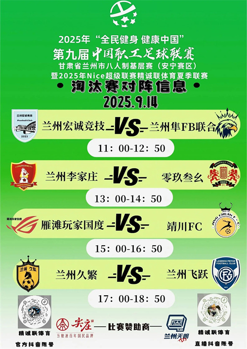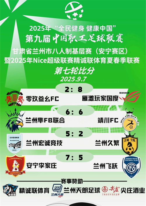 9月7日,2025年“全民健身 健康中國”第九屆中國職工足球聯(lián)賽甘肅省蘭州市八人制基層賽暨2025 年 Nice 超級聯(lián)賽精誠聯(lián)體育夏季聯(lián)賽,第一階段最后一輪比賽,在安寧 Nice 足球場結(jié)束,八只參賽球隊奉獻(xiàn)了四場精彩對決。