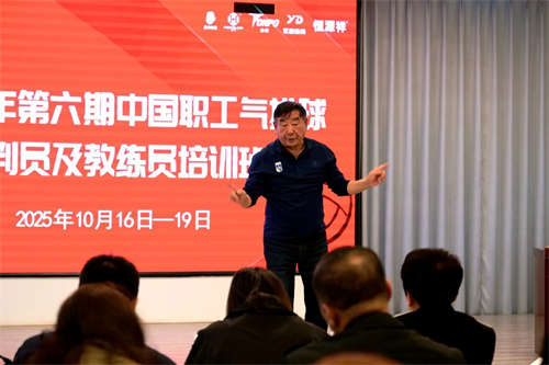 10月17日,由中國企業體育協會主辦;中國企業體育協會排球專業委員會與遼寧盈今體育科技有限公司共同承辦;盤錦市氣排球協會、恒佳體育文化(廣東)有限公司協辦的2025年第六期中國職工氣排球裁判員及教練員培訓班于遼寧省盤錦市開班。
