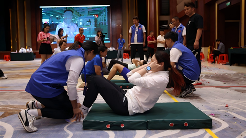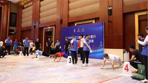 賽事設置兼具科學性與趣味性,分為個人賽與團體賽兩個組別。個人賽中,男子組進行了波比跳和俯臥撐的較量,女子組則圍繞波比跳和仰臥起坐展開角逐,以規定時間內完成次數決出勝負。團體賽則更考驗團隊的協作與策略,由3名隊員依次完成“深蹲推舉啞鈴接力折返”、“手肘交替平板支撐接力”、“三人協力夾球跑”和“團隊齊心搬運沙包接力”四個項目,最終按總用時排名。比賽現場氣氛熱烈、競爭激烈,活動還通過線上直播的方式,讓更多人感受到了職工們的運動熱情。