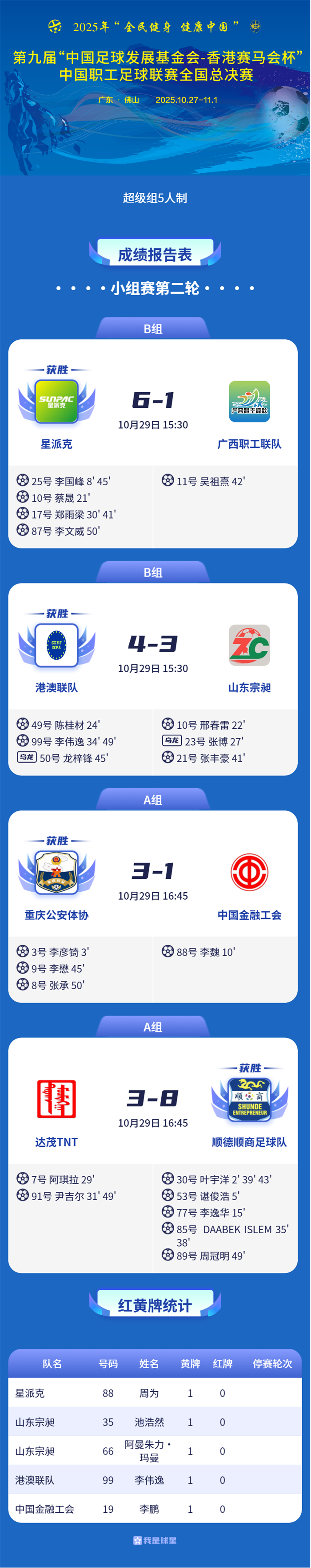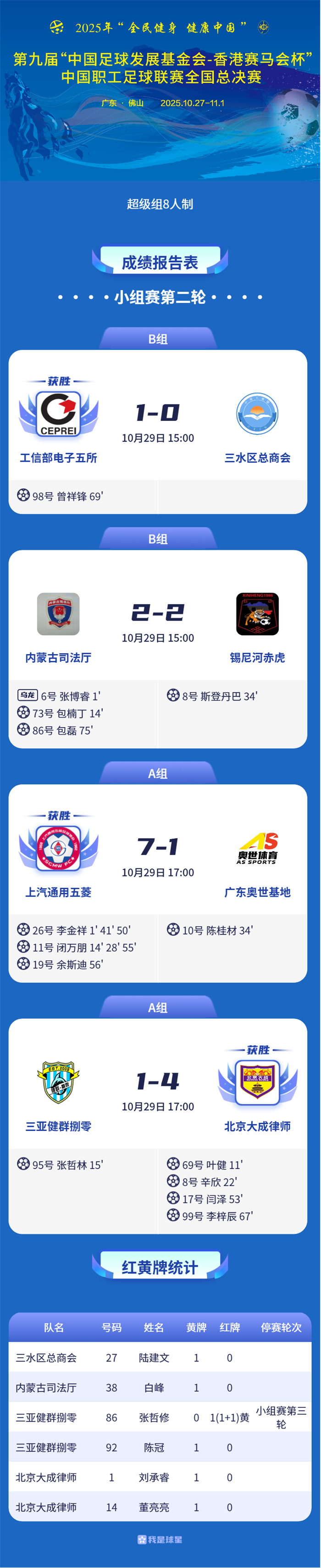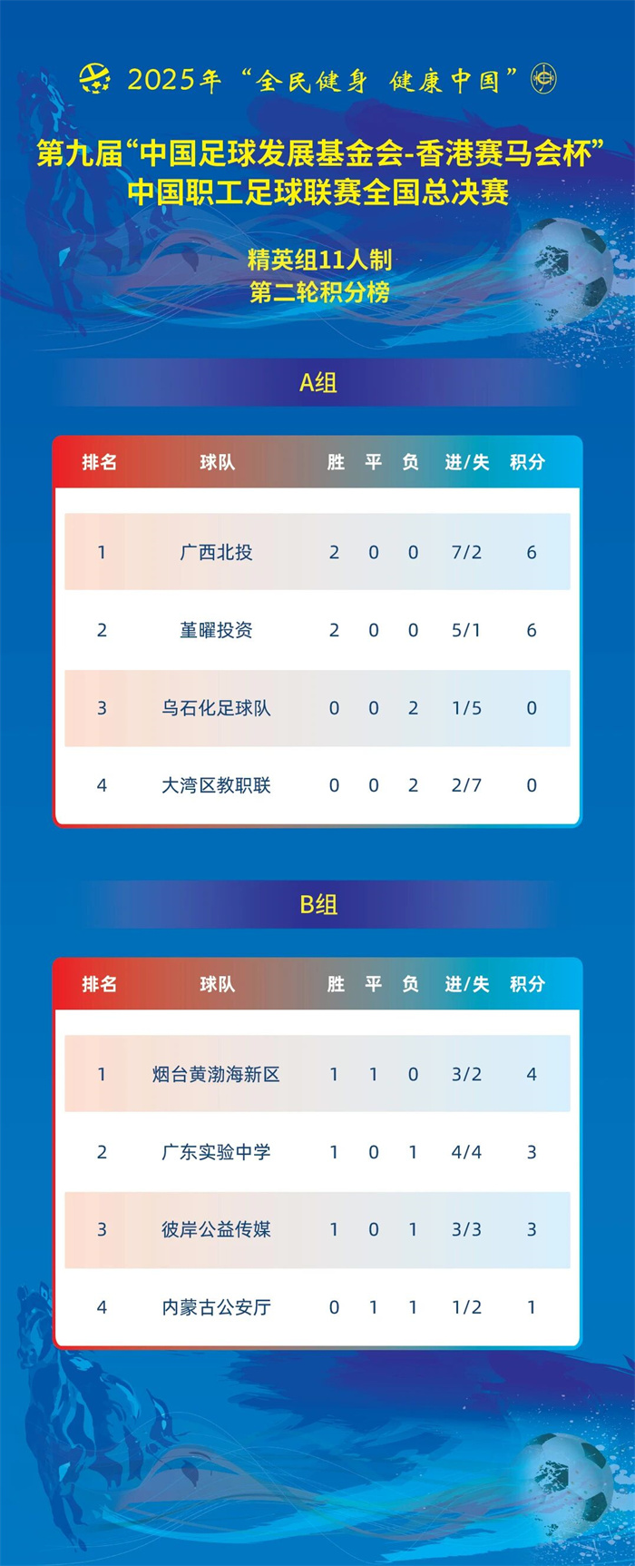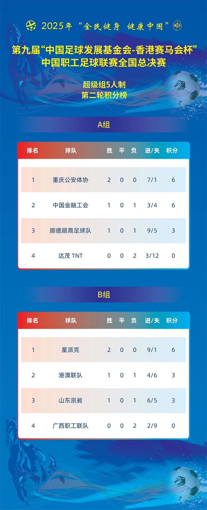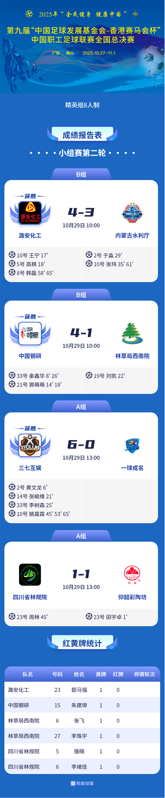 第九屆中國職工足球聯賽全國總決賽第二輪比賽成績公告