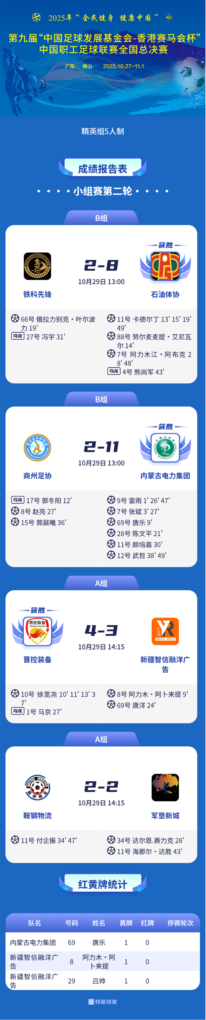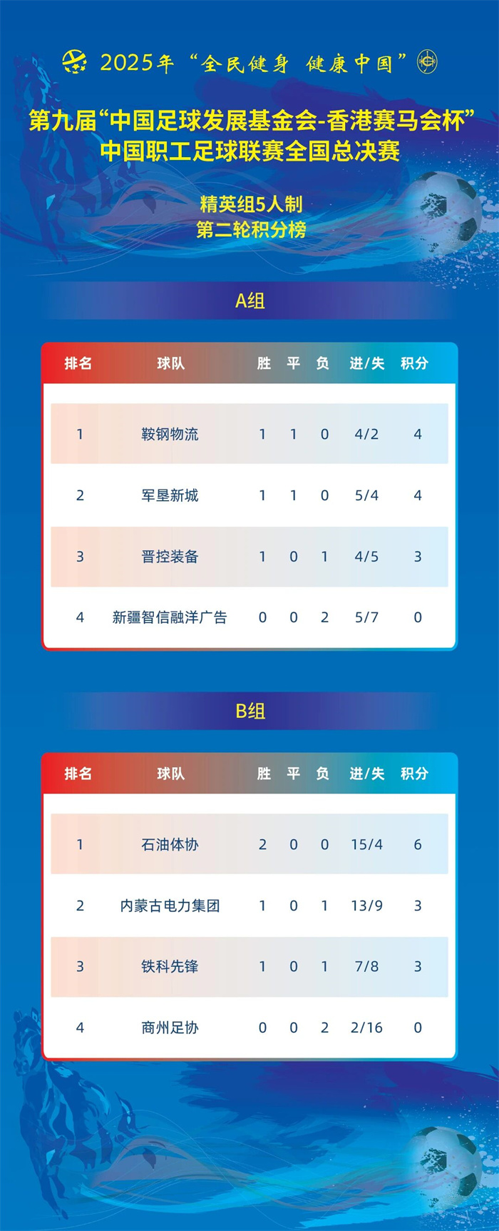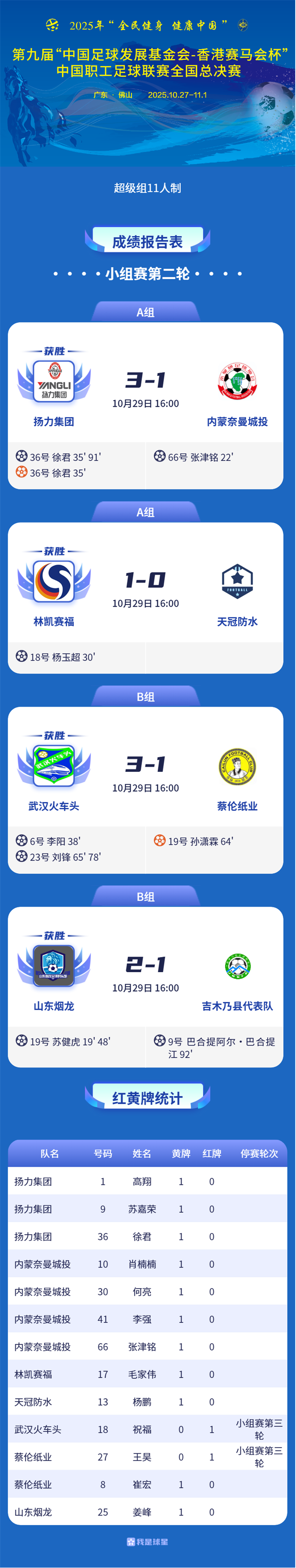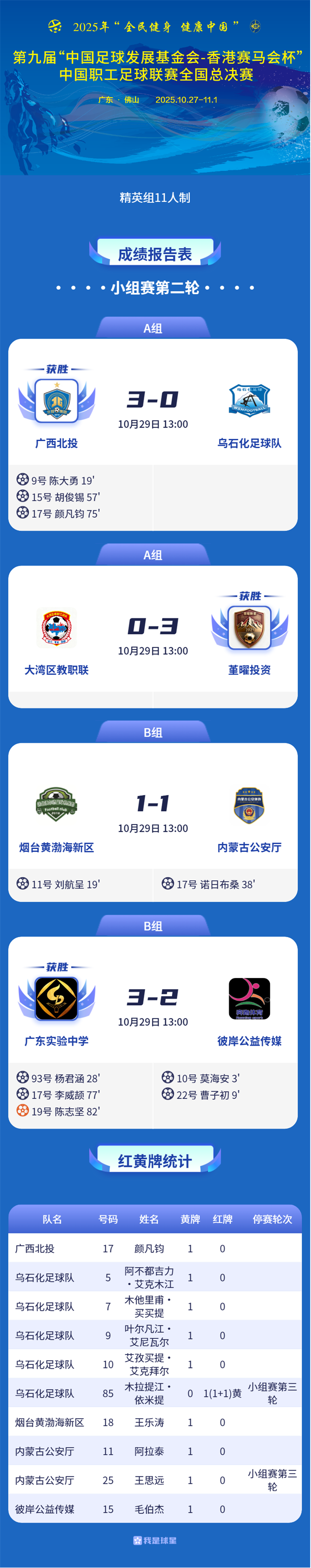 第九屆中國職工足球聯賽全國總決賽第二輪比賽成績公告