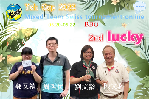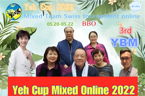 葉氏杯2022網絡橋牌混合團體賽(Yeh Cup 2022 Mixed Team Swiss tournament online)于5.20-5.28在BBO上進行。今年的賽事邀請了來自大陸、中國臺北、中國香港、新加坡、泰國、印尼、菲律賓等地區的24支隊伍140名牌手參賽,國手、名宿紛紛現身參賽。