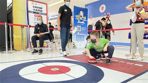 在2021年的點亮“京彩”公益路體彩活動中,鯨舟冰雪為到場觀眾進行了陸地冰壺