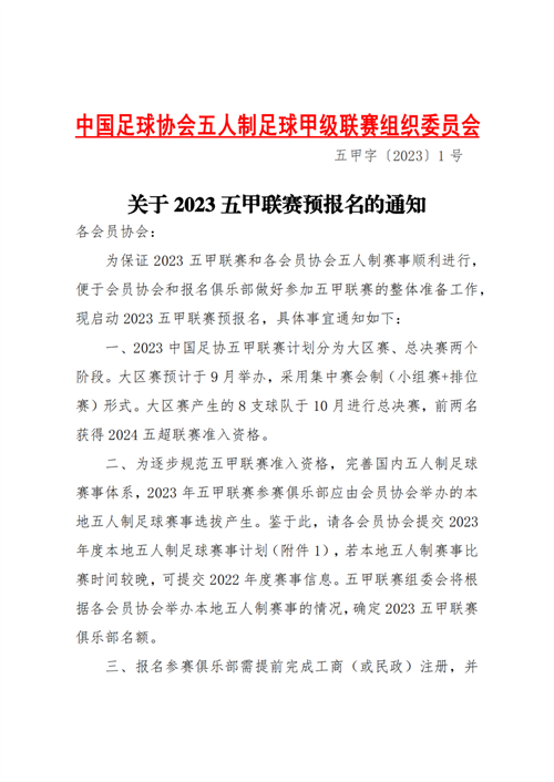 關于2023年五甲聯賽預報名的通知