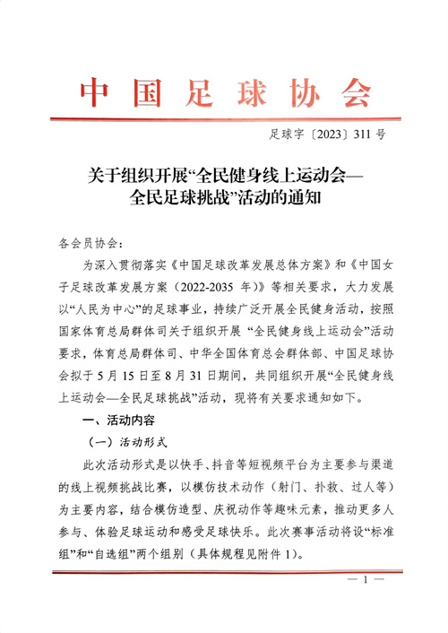 關于組織開展“全民健身線上運動會一全民足球挑戰”活動的通知