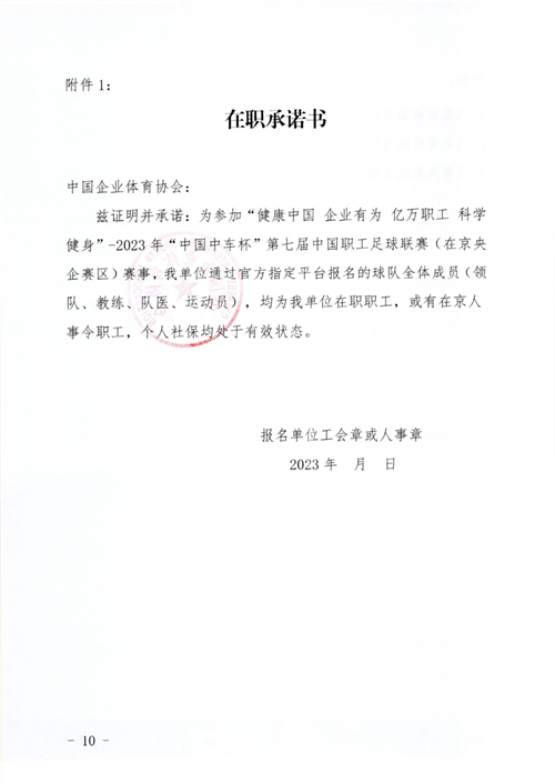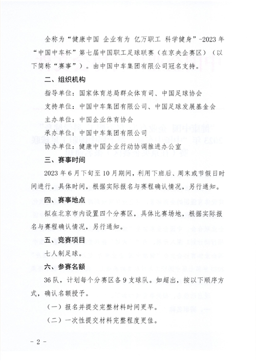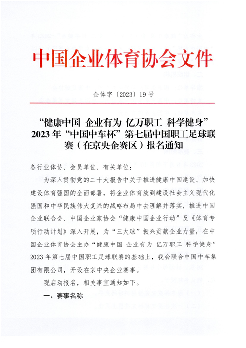 2023“中國中車杯”第七屆中國職工足球聯賽(在京央企賽區)報名通知