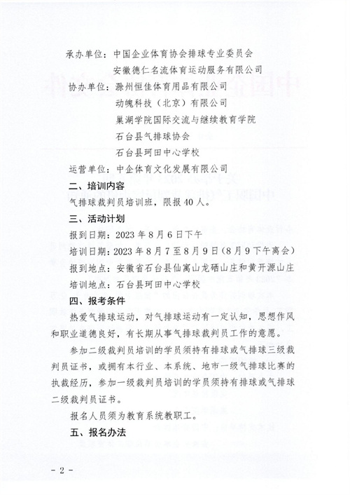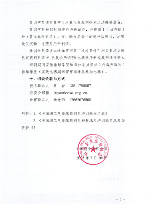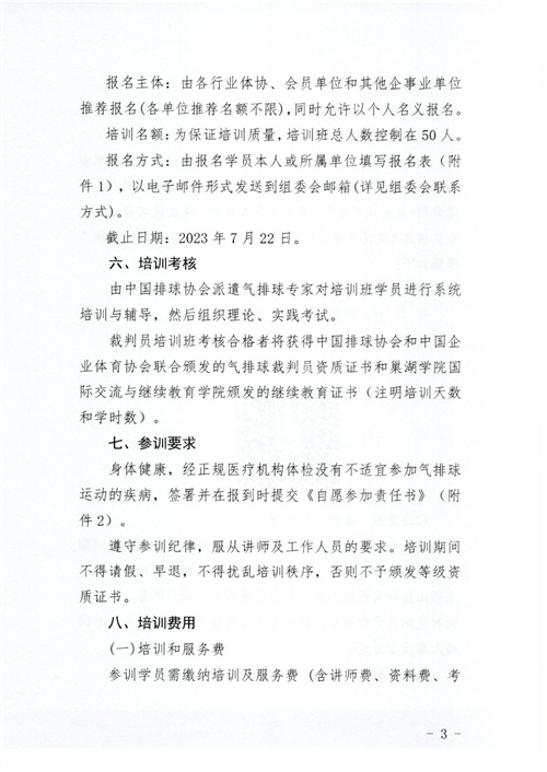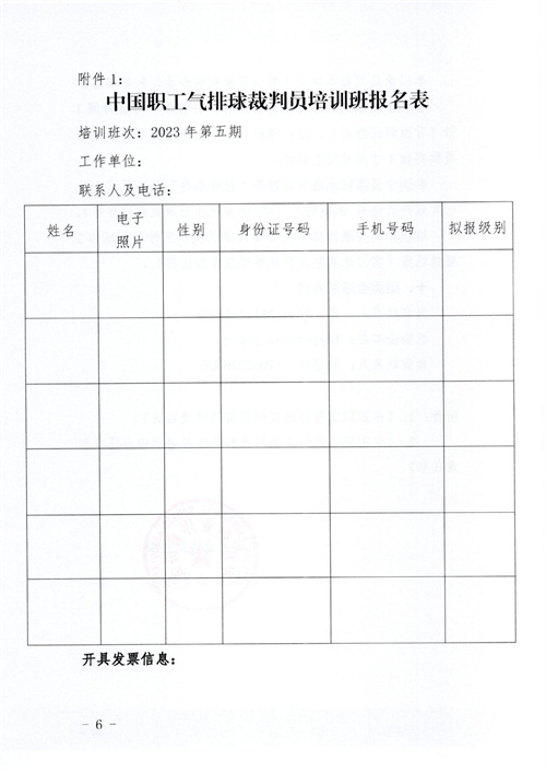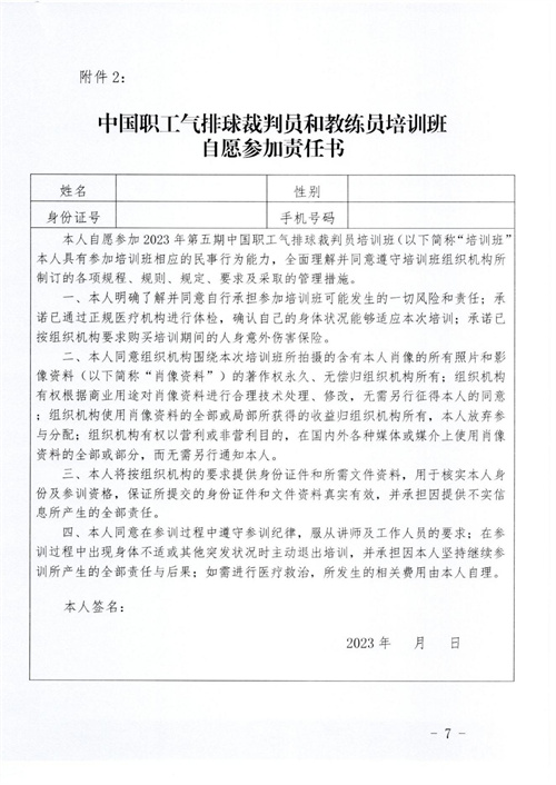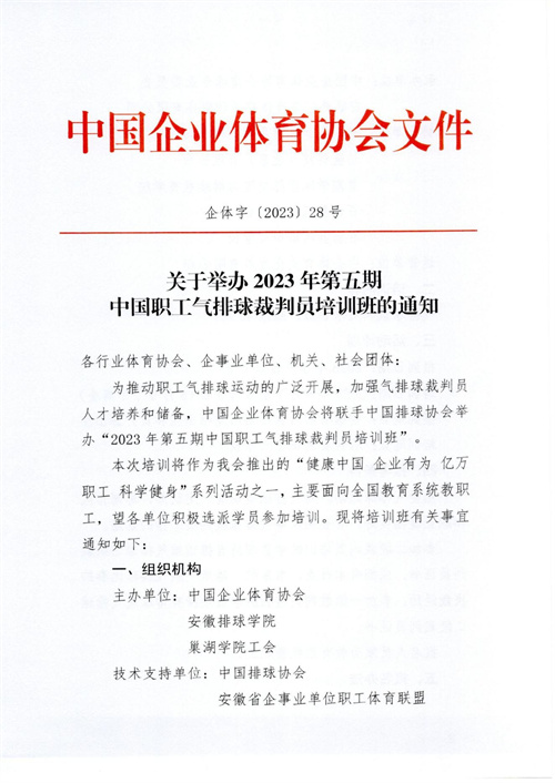 關于舉辦2023年第五期中國職工氣排球裁判員培訓班的通知