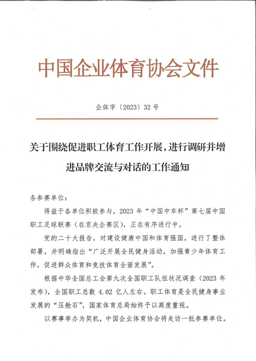 關于圍繞促進職工體育工作開展,進行調研并增進品牌交流與對話的工作通知