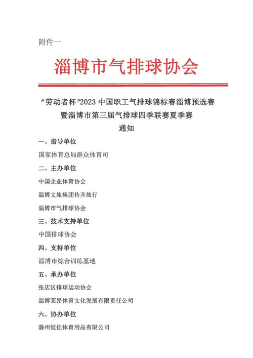 關于舉辦“勞動者杯”2023中國職工氣排球錦標賽淄博站預選賽暨淄博市第三屆氣排球四季聯賽夏季賽的通知