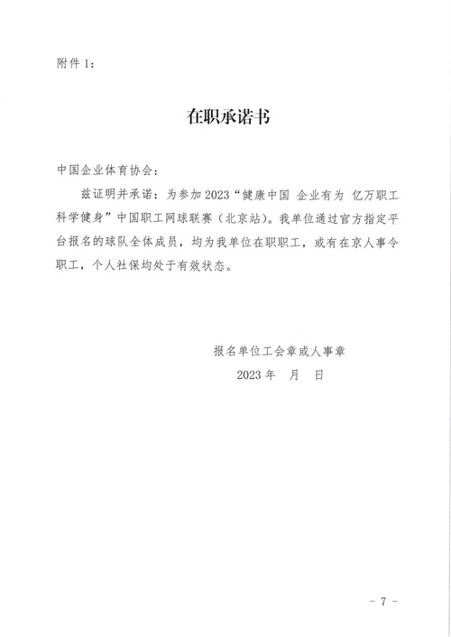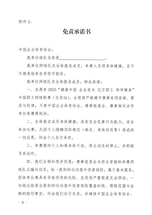 2023“健康中國 企業有為 億萬職工 科學健身”中國職工網球聯賽(北京站)報名通知