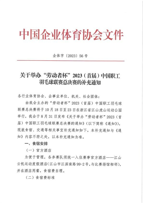 關于舉辦“勞動者杯”2023(首屆)中國職工羽毛球聯賽總決賽的補充通知