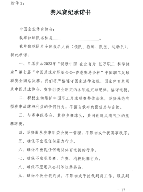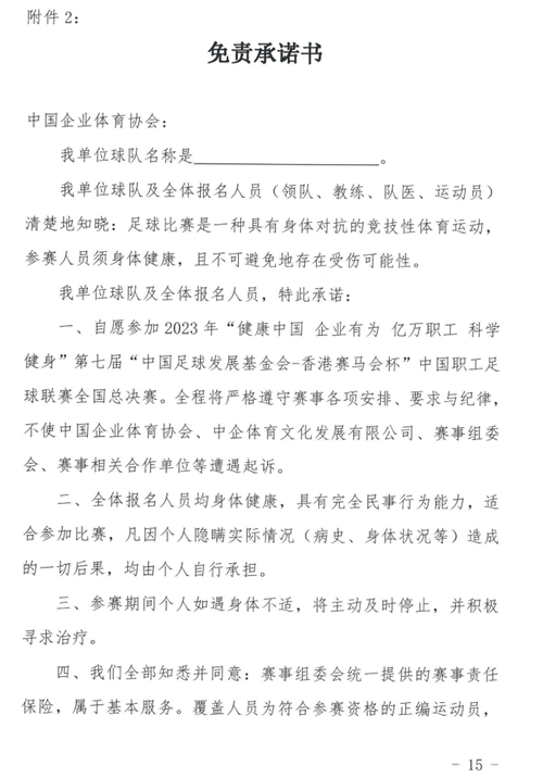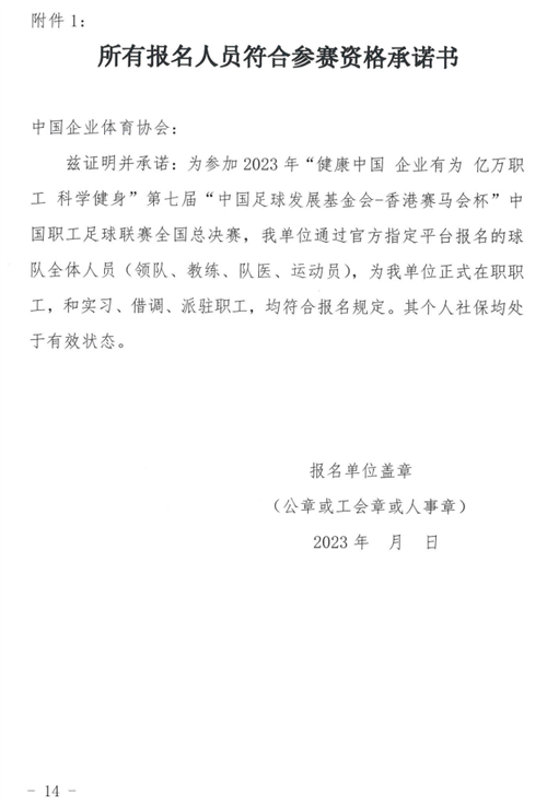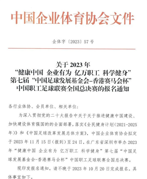 關(guān)于2023年第七屆“中國足球發(fā)展基金會-香港賽馬會杯”中國職工足球聯(lián)賽全國總決賽的報名通知