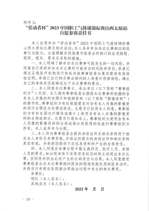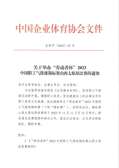 關于舉辦"勞動者杯"2023中國職工氣排球錦標賽山西太原站比賽的通知