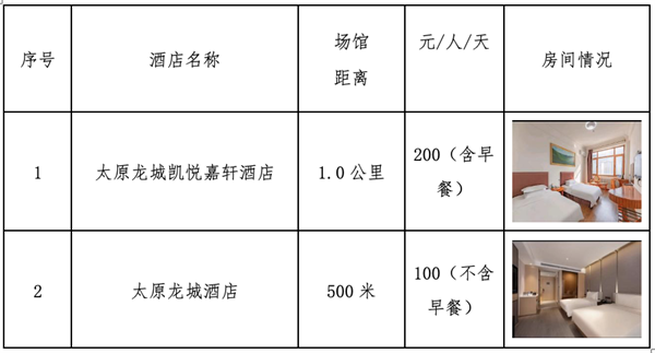 官方指定酒店為太原龍城凱悅嘉軒酒店與太原龍城酒店,參賽隊可按需自行選擇。請各參賽隊確定名單后,盡早與組委會段錦波聯系預定房間。