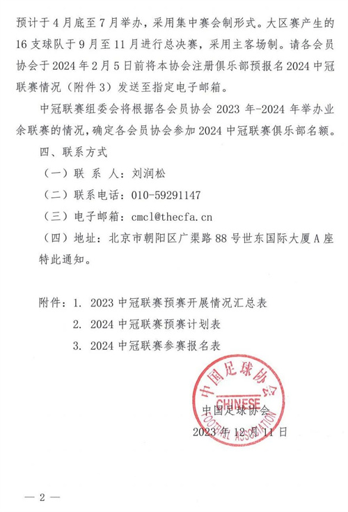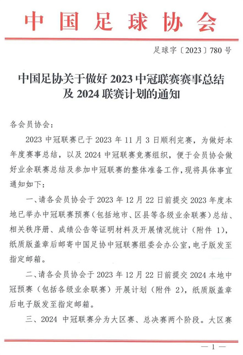 關于轉發《中國足協關于做好2023中冠聯賽賽事總結及2024聯賽計劃的通知》的通知