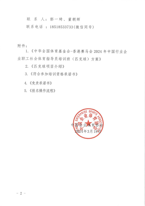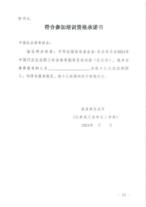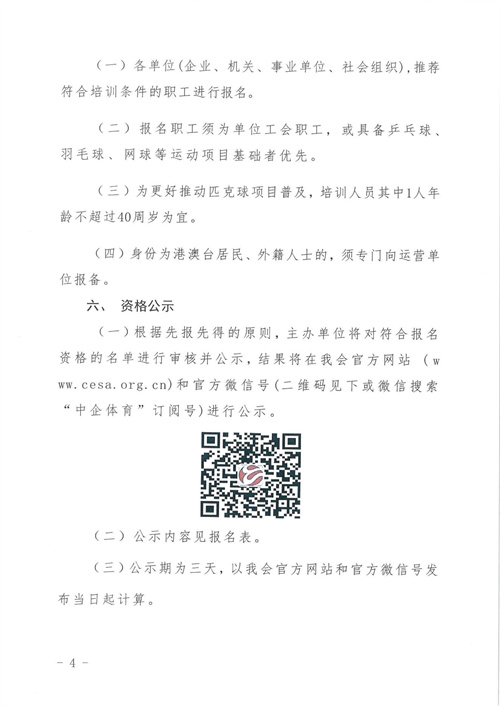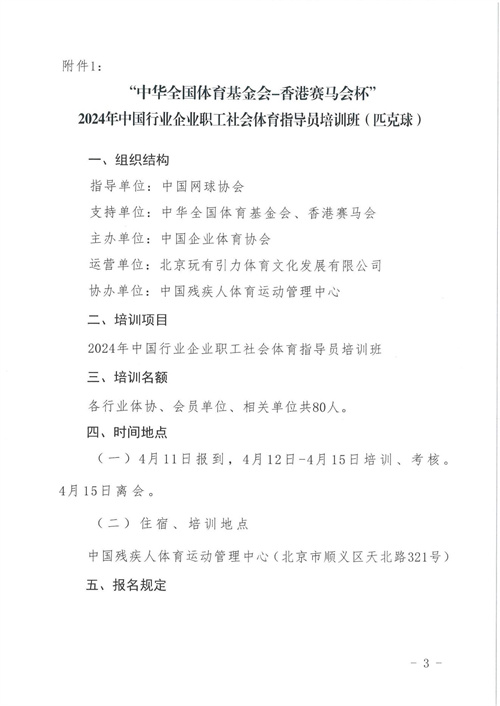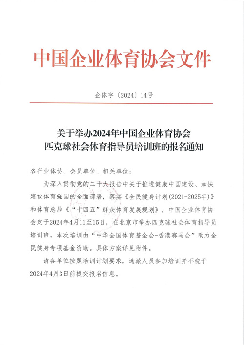 關于舉辦2024年中國企業體育協會匹克球社會體育指導員培訓班的報名通知